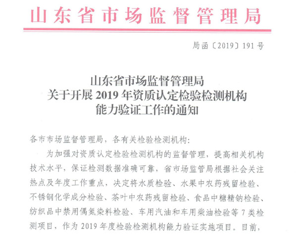 山東省市場監(jiān)管局2019年資質(zhì)認定檢驗檢測機構能力驗證工作通知