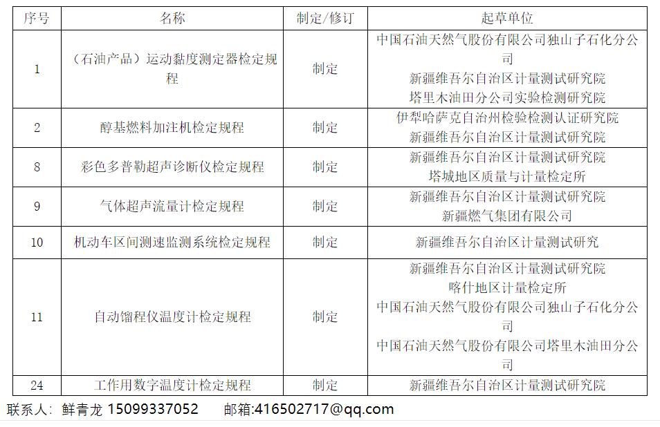 擬發(fā)布2022年度自治區(qū)地方計(jì)量檢定規(guī)程匯總表