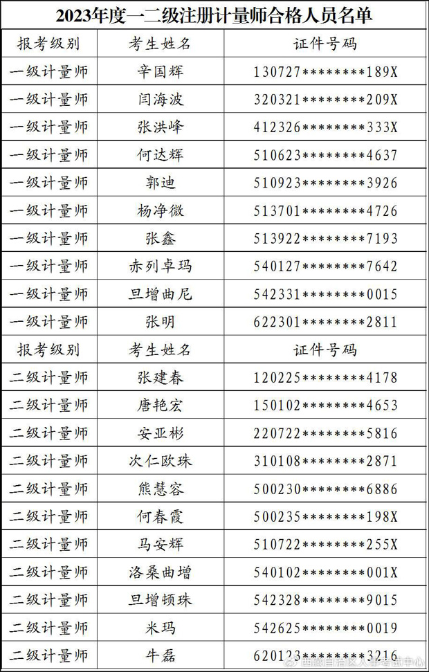 關(guān)于2023年度一二級注冊計量師職業(yè)資格考試西藏考區(qū)考后資格復(fù)核的通知