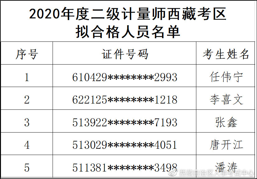 根據(jù)《人力資源社會保障部人事考試中心關(guān)于印發(fā)<專業(yè)技術(shù)人員資格考試報名證明事項告知承諾制試點工作實施方案>的通知》(人考中心函〔2019〕26號),二級注冊計量師職業(yè)資格考試實行報名證明事項告知承諾制,考生在報名時簽署了《專業(yè)技術(shù)人員資格考試報名證明事項告知承諾制報考承諾書》,承諾了學(xué)歷、所學(xué)專業(yè)、工作年限、社保等信息真實、準(zhǔn)確、有效并符合報名條件,愿意承擔(dān)虛假承諾的責(zé)任并接受相應(yīng)處理。為強化落實告知承諾制事中事后監(jiān)管要求,現(xiàn)將2020年度二級注冊計量師職業(yè)資格考試西藏考區(qū)擬合格人員名單進行公示(公示期為2021年1月27日—2月6日),同時對擬合格人員進行考后資格復(fù)核,現(xiàn)將二級注冊計量師職業(yè)資格考試考后資格復(fù)核事宜通知如下: